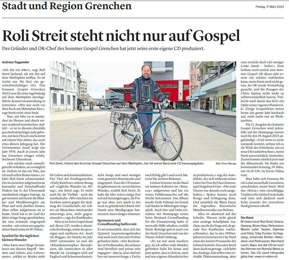 Im November 2022 konnten wir erfolgreich eine Crowdfunding-Kampagne für die Finanzierung durchführen. Im März 2023 haben wir ein Album mit eigenen GrooveSongs produziert.Sollen wir dich auf dem Laufenden halten? Dann schicke uns eine Nachricht und hinterlasse uns deine Mailadresse oder Handynummer: mail@m-odem.chWer uns auf der letzten Meile noch direkt unterstützen möchte, darf das gerne auf unser Konto: